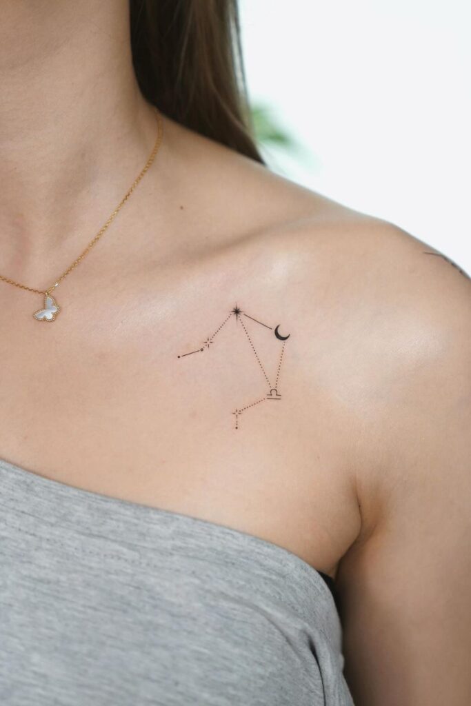 The libra constellation tattoo captures the stars that make up the sign, often chosen for its celestial beauty.
