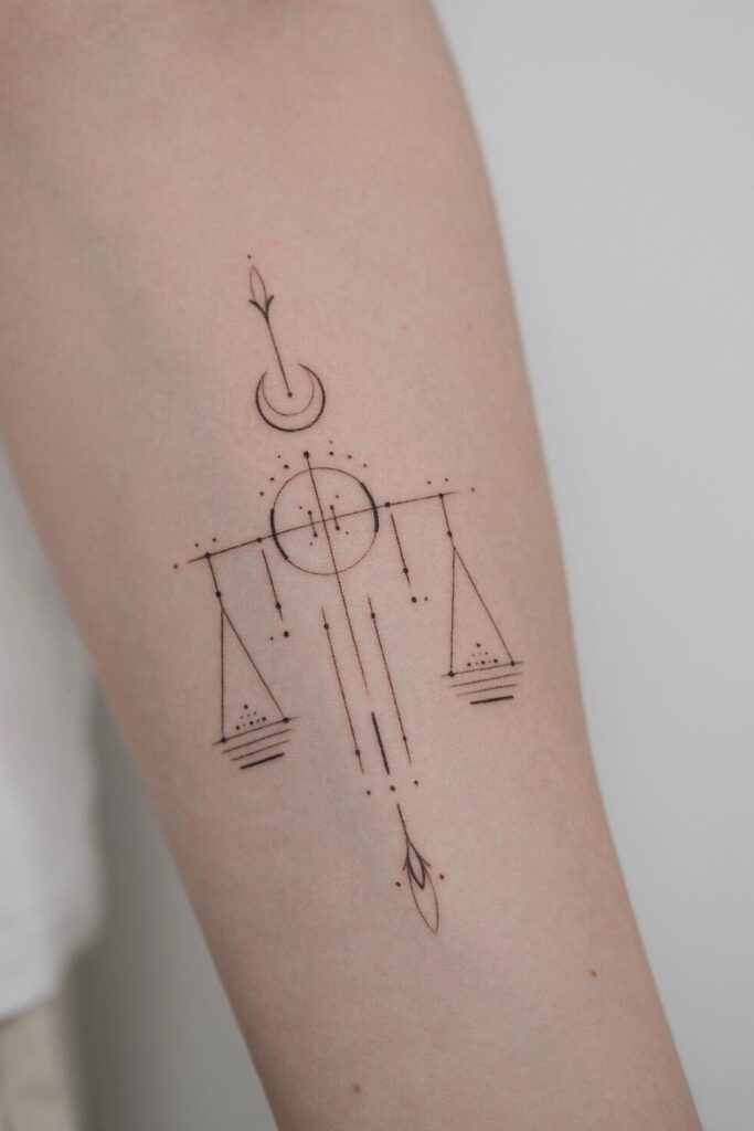 Think of a dainty minimalist libra tattoo on the wrist, a delicate constellation across the collarbone, or even a soft watercolor Libra symbol that blends art with astrology.