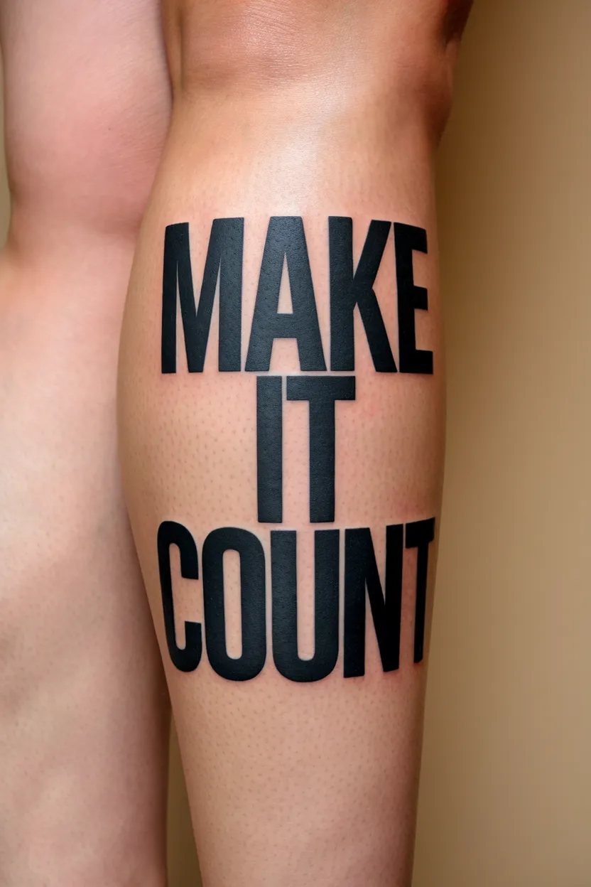 A “make it count” quote tattoo on your leg will keep you inspired with every step.