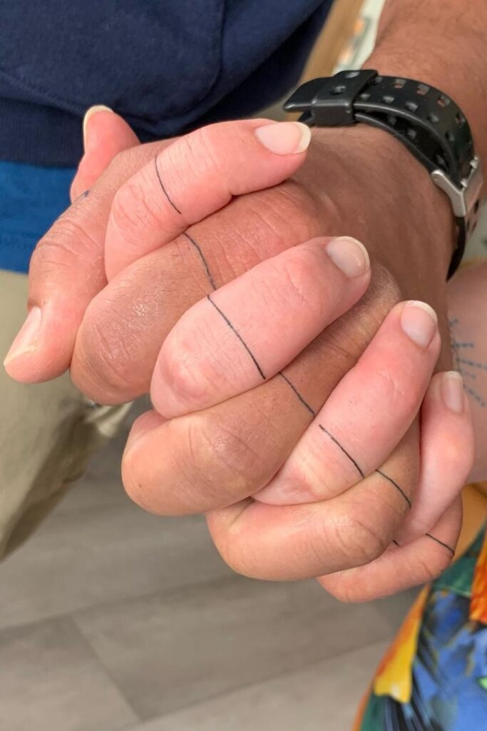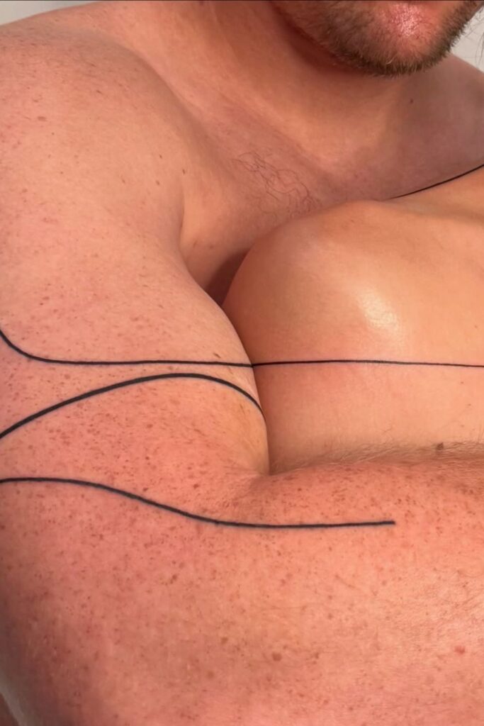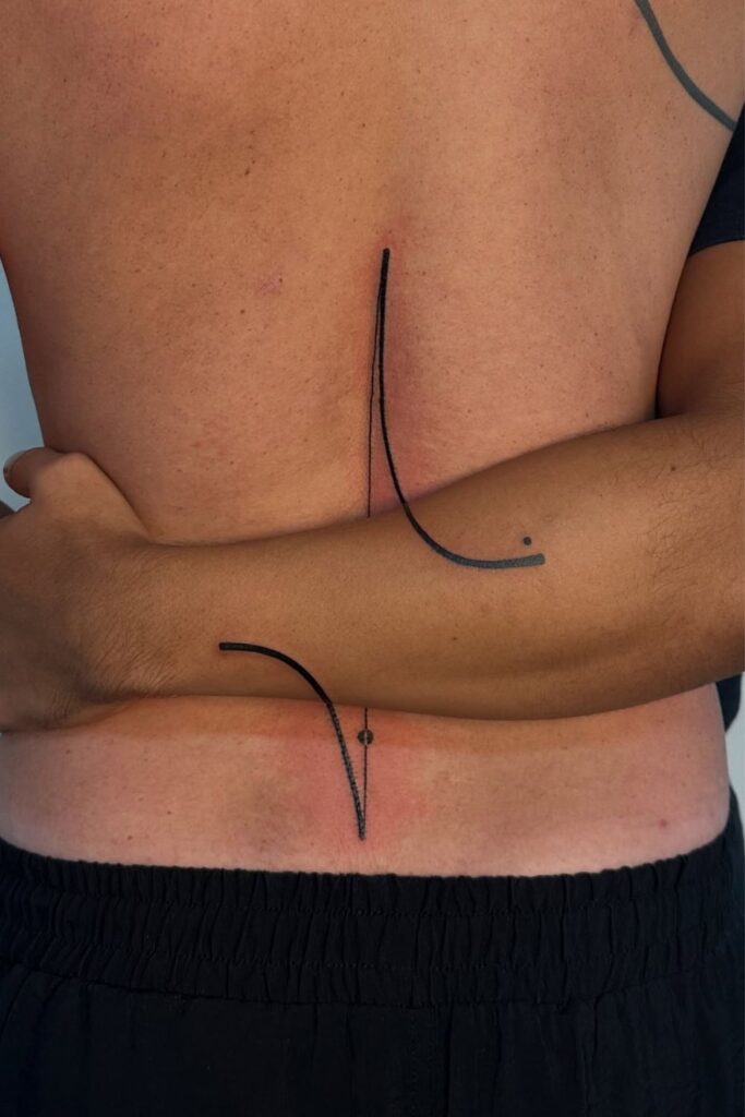 Abstract, geometric lines that only align when two bodies come together, these tattoos that join together carry a quiet but deep symbolism.