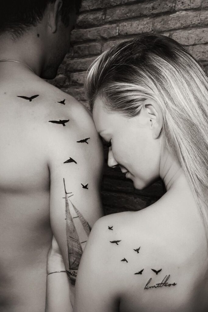 These connecting matching tattoos are ideal for couples who want something elegant, symbolic, and timeless.