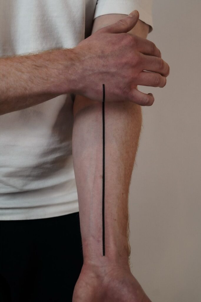 A bold, straight line running down the forearm represents focus, clarity, and direction.