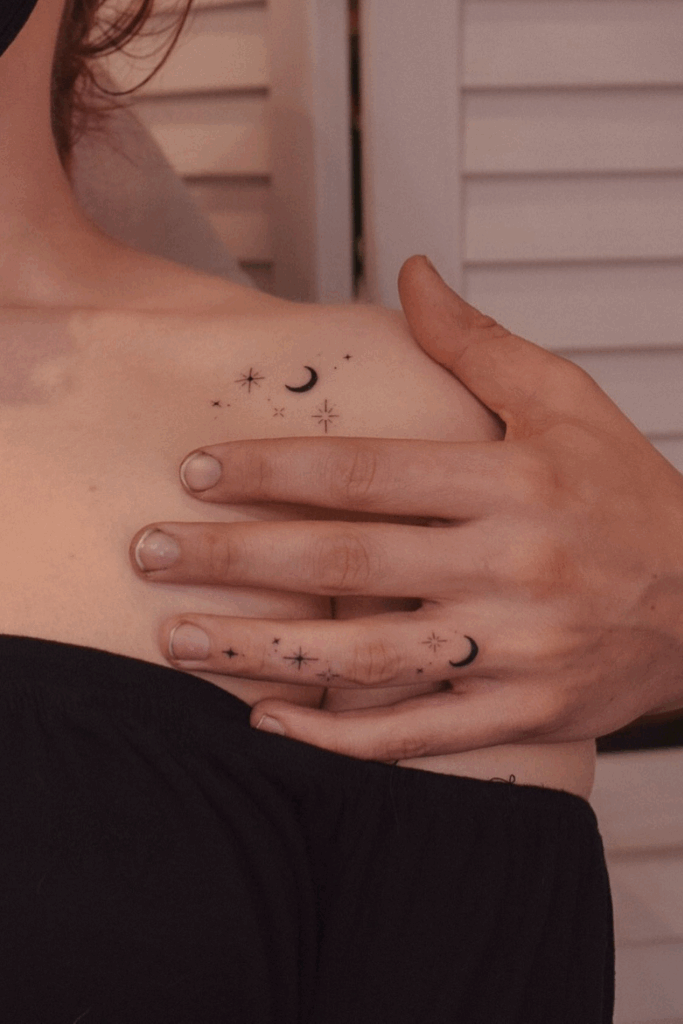 Moonlight Touch: Celestial Finger and Shoulder Tattoos