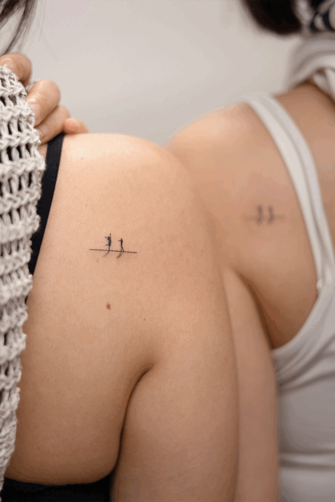 Walking the Line: Tiny Silhouette Matching Tattoos