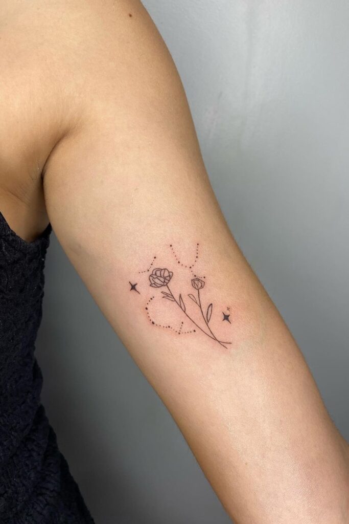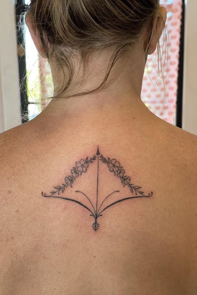 These tattoos often feature flowers entwined with the Sagittarius arrow or symbol, adding a feminine and artistic touch.