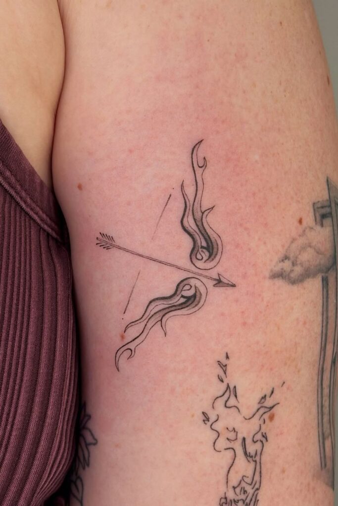 Arrows look stunning as single-line tattoos, but they also pair beautifully with stars, moons, or the Sagittarius symbol for a layered meaning.
