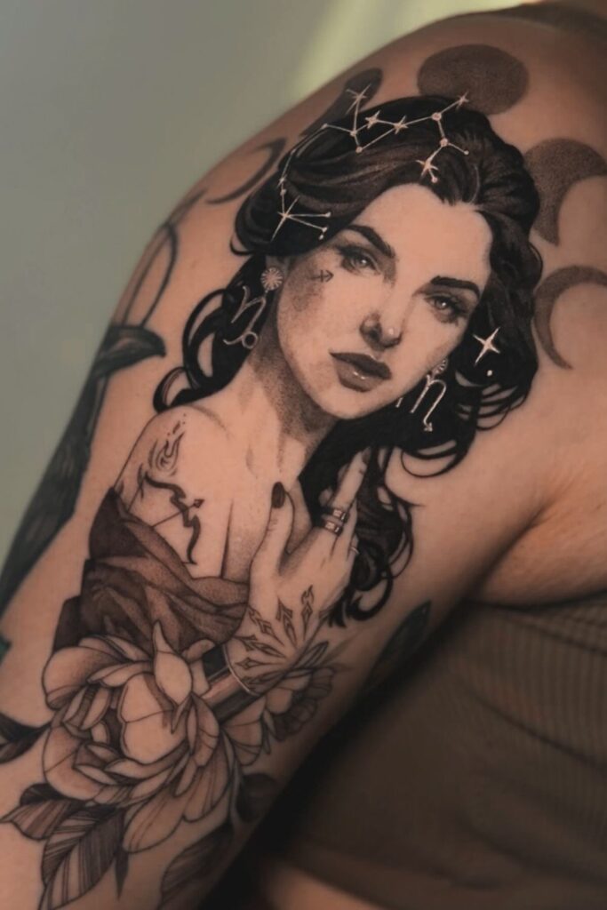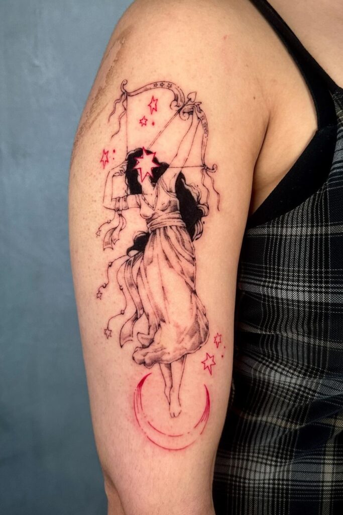 A goddess tattoo can also be combined with other Sagittarius elements like stars or flowers to create something entirely unique.