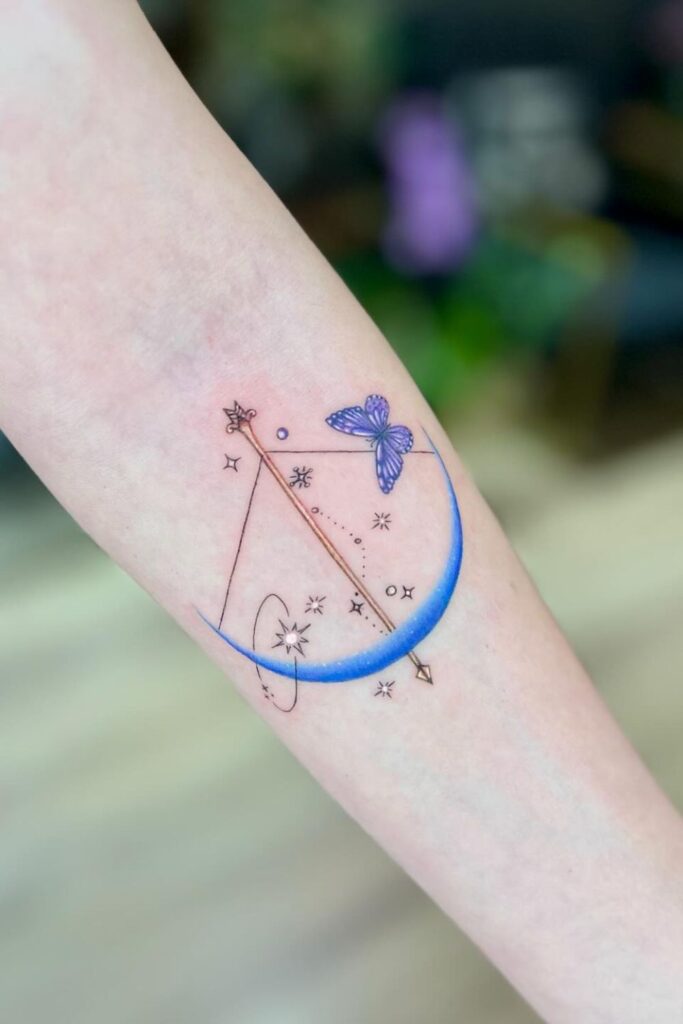 This style works beautifully for a small Sagittarius tattoo or as part of Sagittarius tattoo designs for women, placed on areas like the , forearm, or ribs.