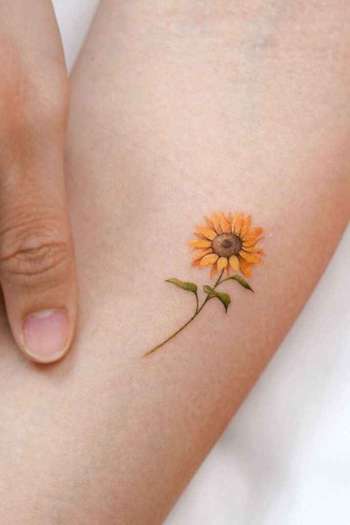 If you want something a little more subtle, a tiny sunflower tattoo behind the ear is charming and delicate.