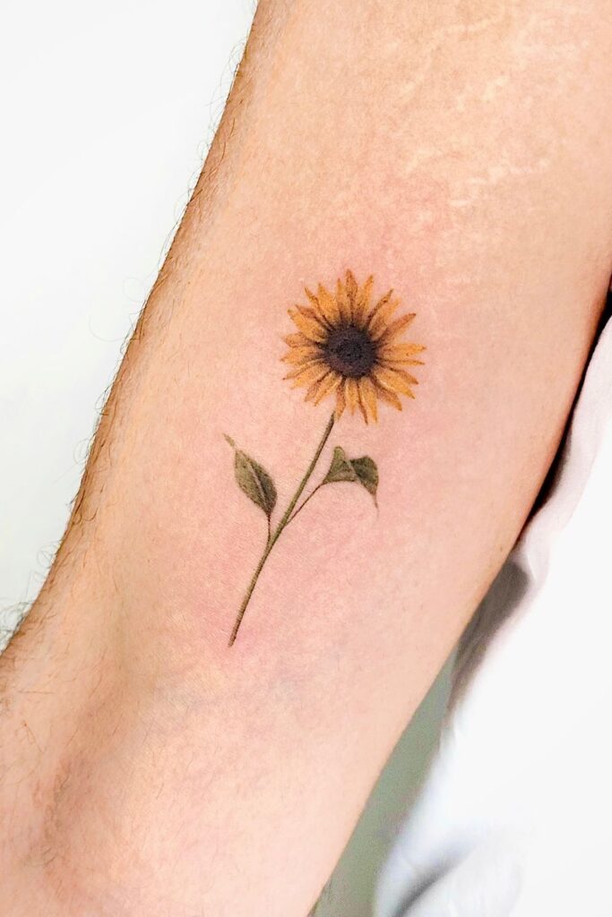 This minimal sunflower design on the inner arm is a gentle reminder to look toward the light, even in life s smallest moments.