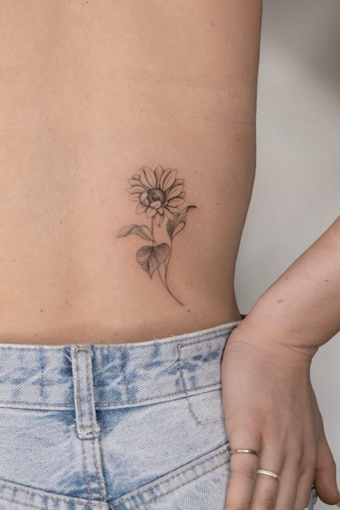 A sunflower tattoo along the ribs is more private and often carries deep emotional meaning.