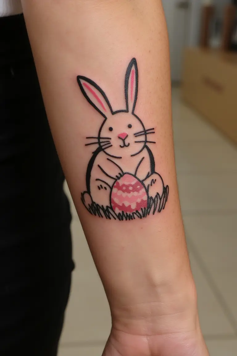 This tattoo features an adorable cartoon bunny with oversized ears.