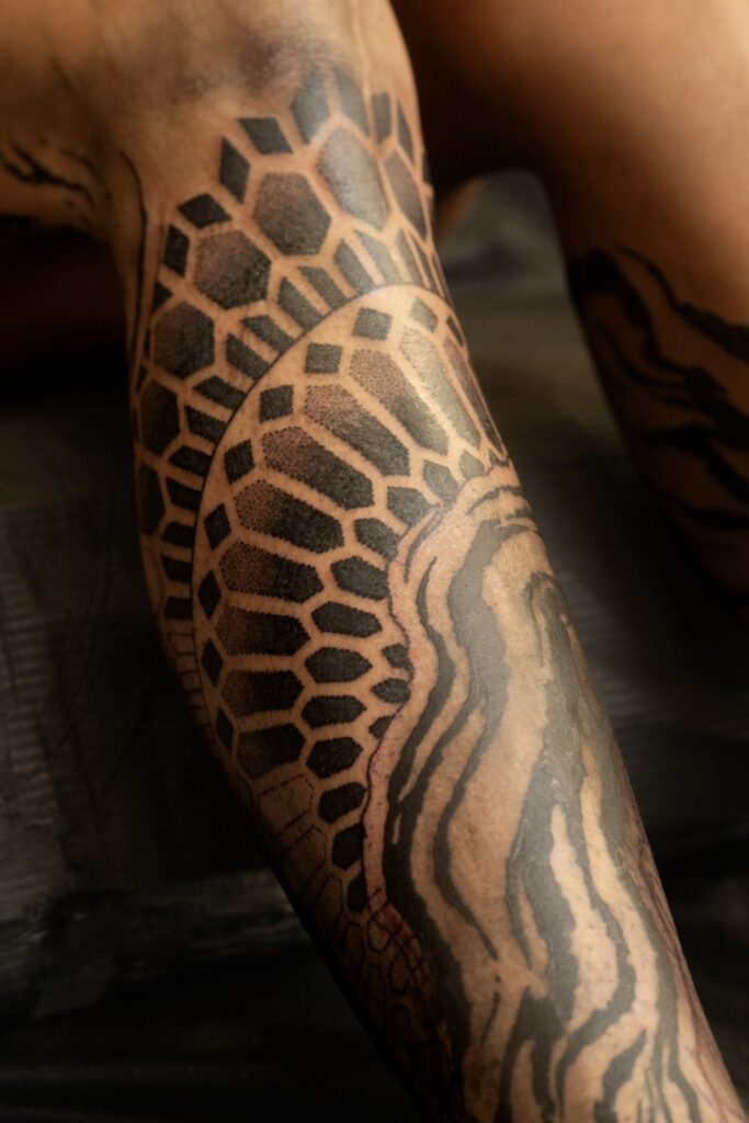 But if you’re someone who enjoys layering stories and styles, a full sleeve might be your calling. It’s a commitment, but it’s also a canvas for storytelling from knee to ankle.