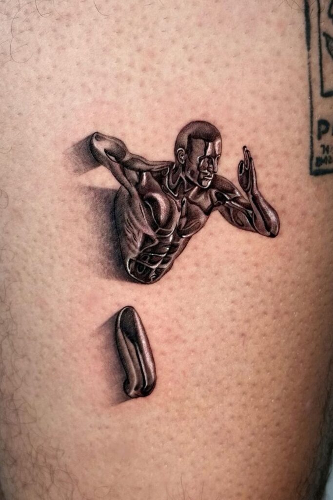 This small but powerful tattoo by inklarity_official captures a runner mid-stride, bursting through the skin with incredible realism.