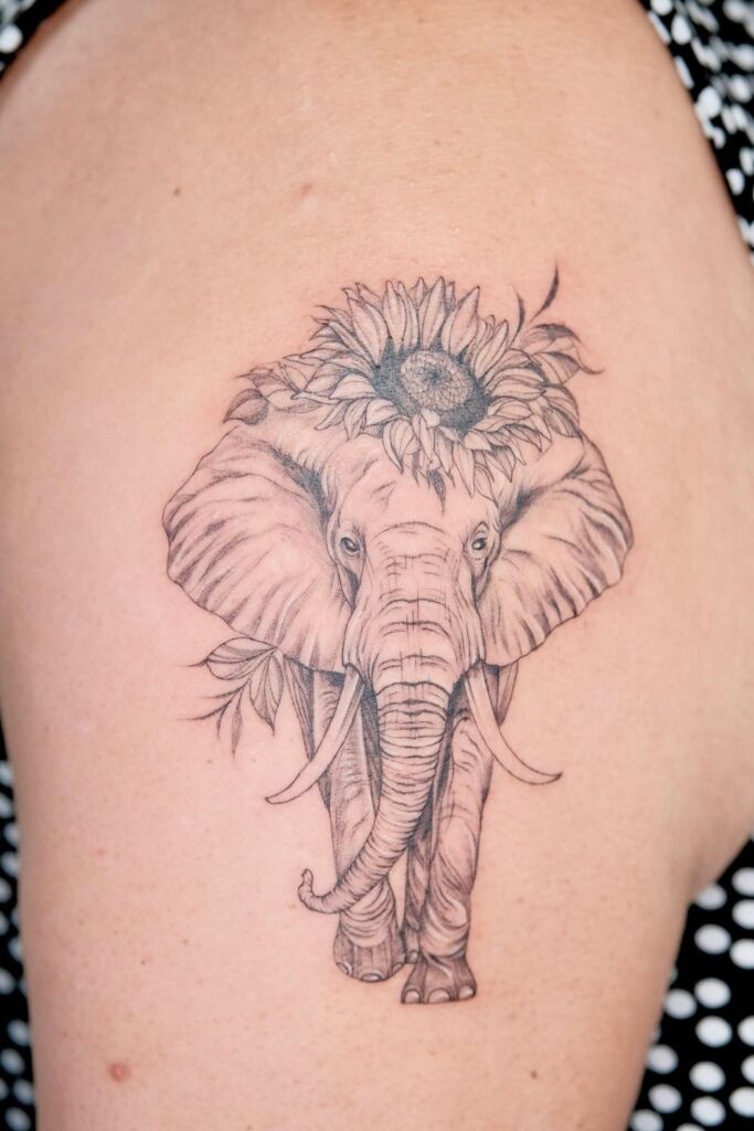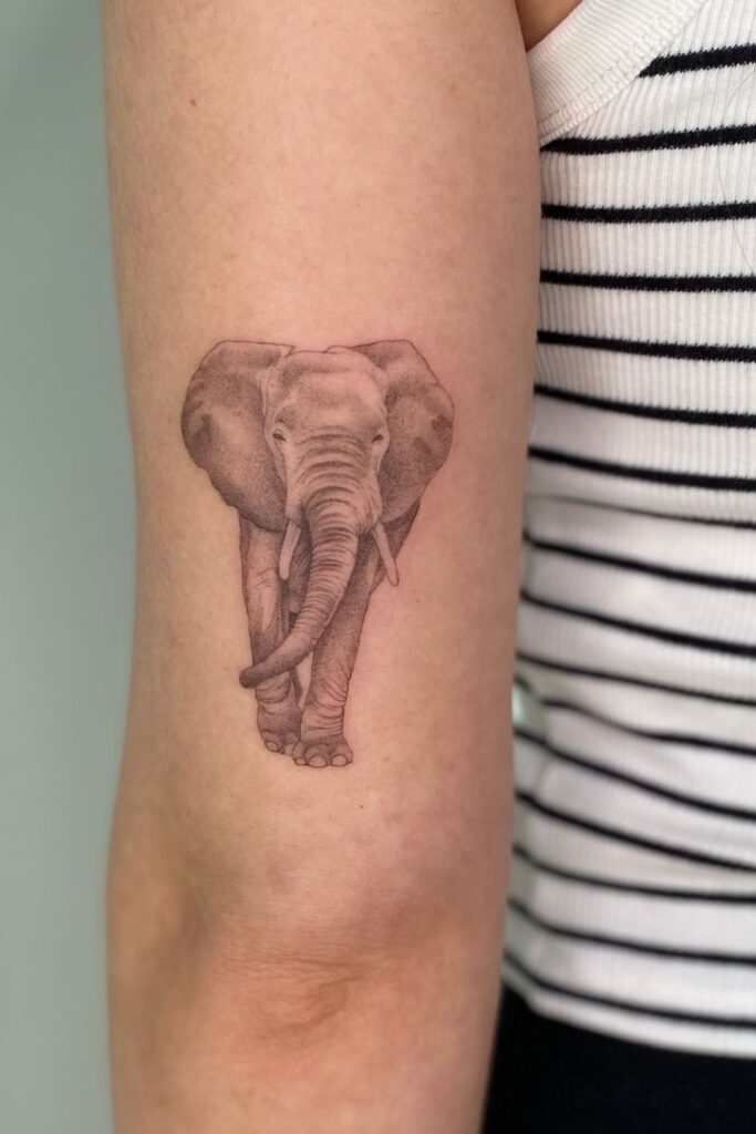 A tattoo featuring an elephant can symbolize resilience, determination, and the ability to overcome challenges.