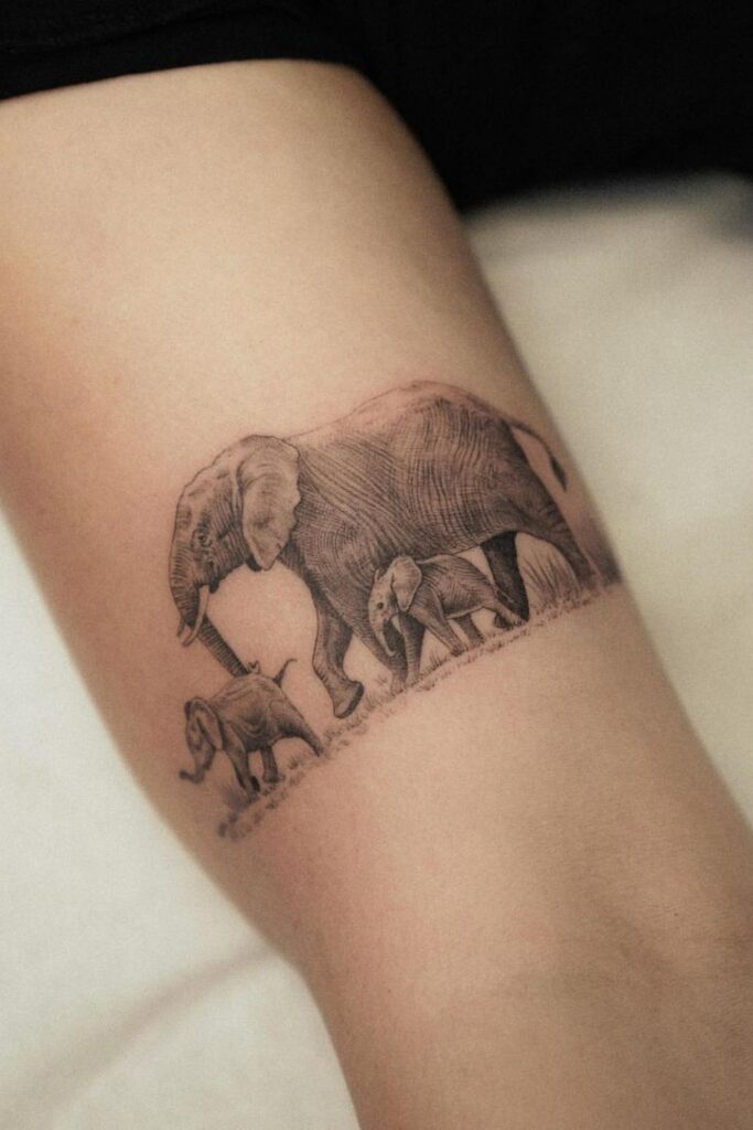 If your tattoo is a tribute to your loved ones, an elephant family tattoo, perhaps a mother elephant with her calves, can beautifully express loyalty, protection, and unconditional love.
