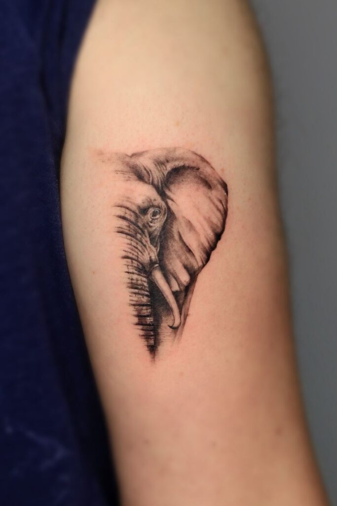 A stunning half-face elephant tattoo symbolizing inner strength and resilience.