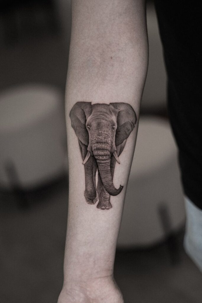 A simple elephant tattooo or a fine line elephant tattoo can reflect this quiet intelligence while maintaining an elegant and subtle look.