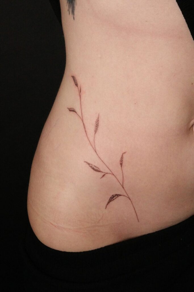 Wild Grace: Wheat-Inspired Minimalist Hip Tattoo