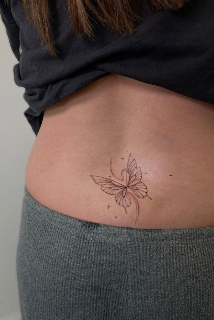 Floating Freedom: Butterfly Hip Tattoo With Stars