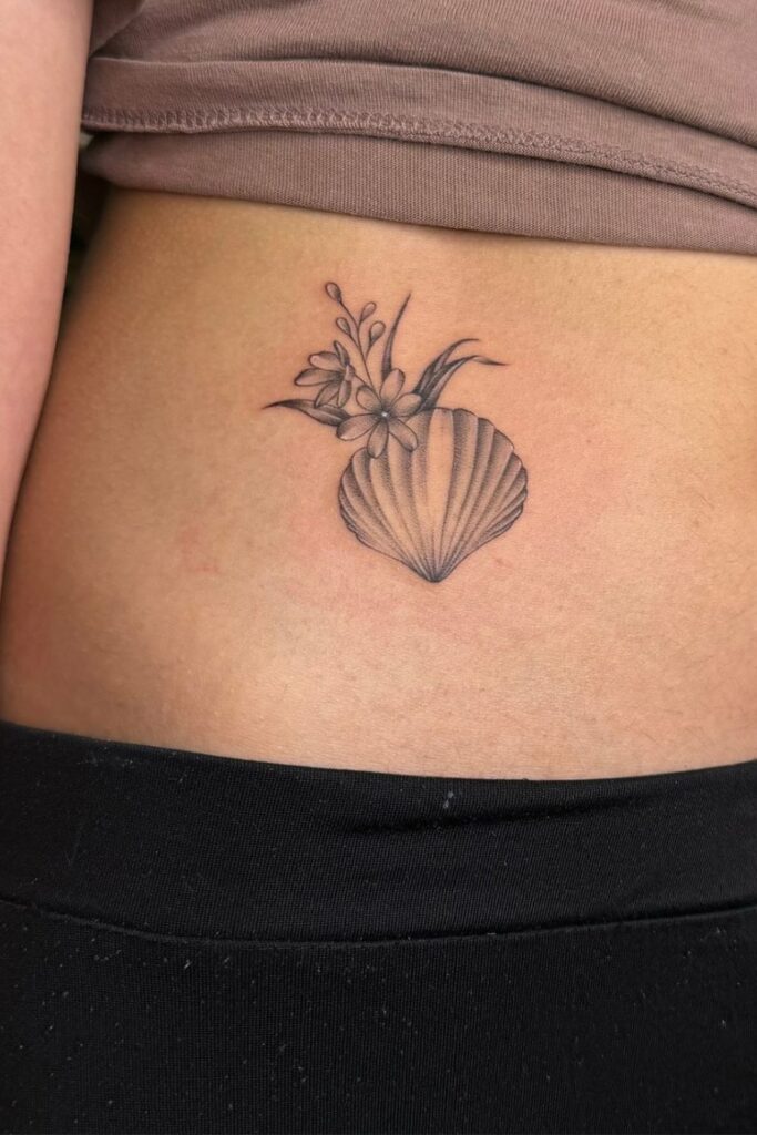 Ocean Bloom: Shell and Flower Hip Tattoo