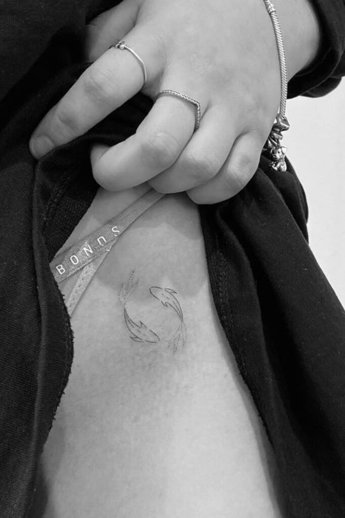 Pisces Soul: Minimalist Twin Fish Hip Tattoo
