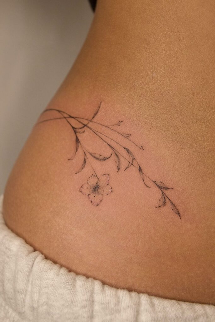 It s a great option for those seeking dainty hip tattoos for women flower designs that combine floral energy with soft movement.