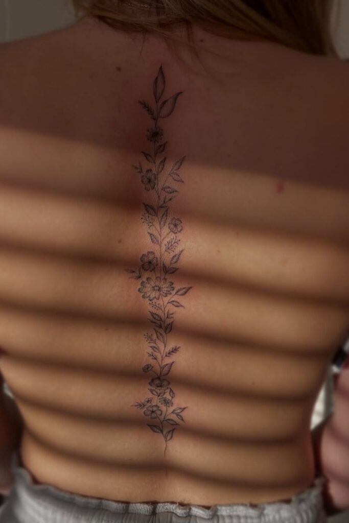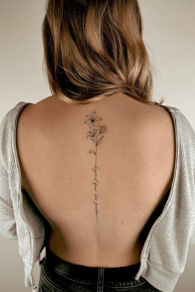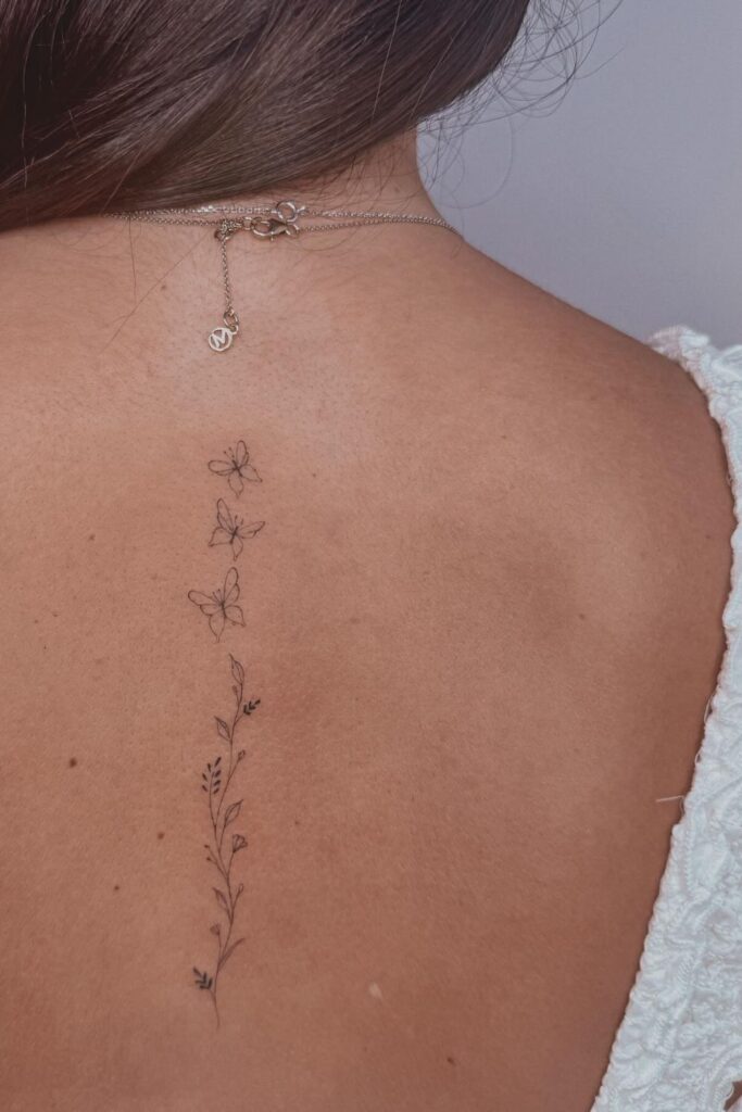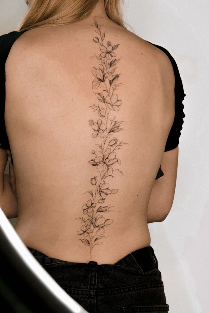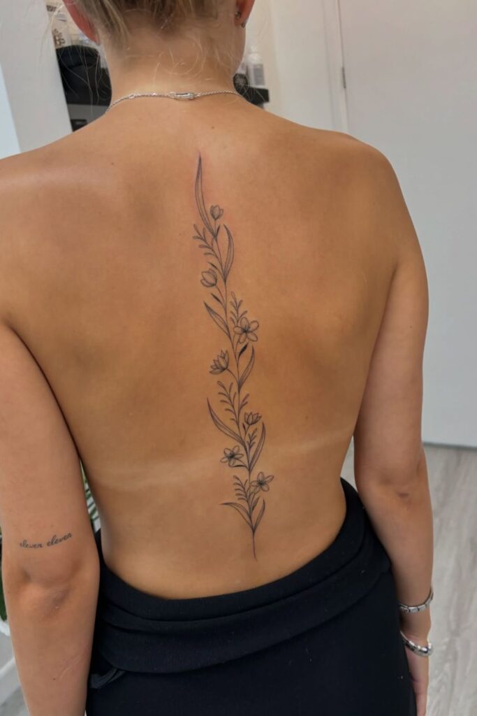 This tattoo reflects elegance and subtle beauty, ideal for those who love simple spine tattoos for women that still make a quiet impact.