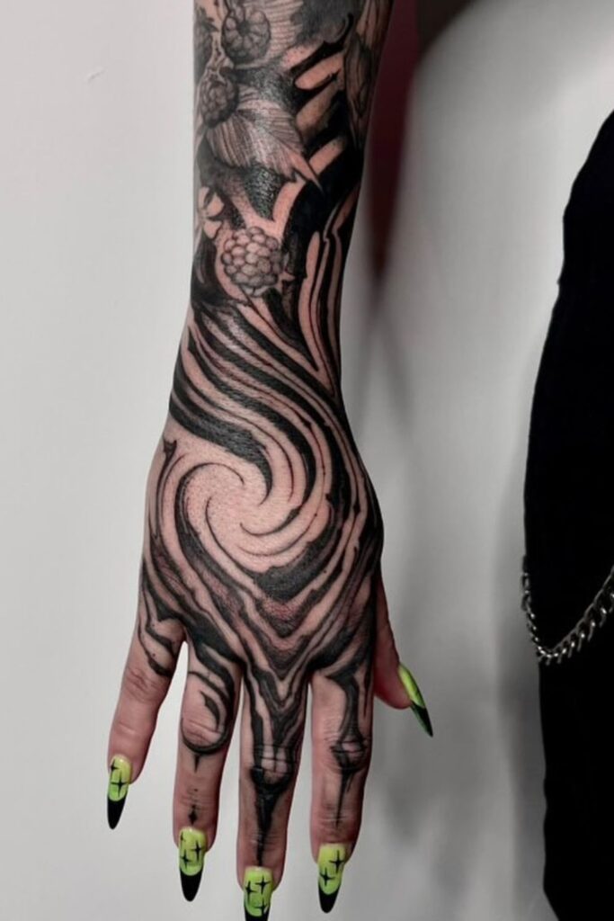 Swirled Darkness Witchy Hand Tattoo