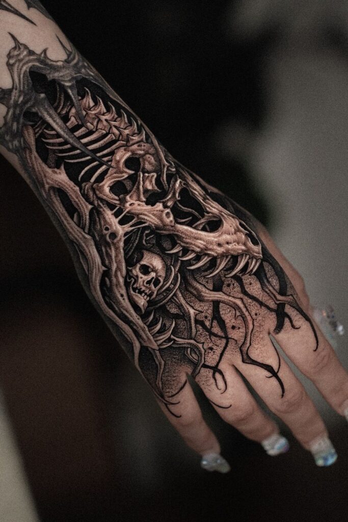 Bone Garden Dark Hand Tattoo