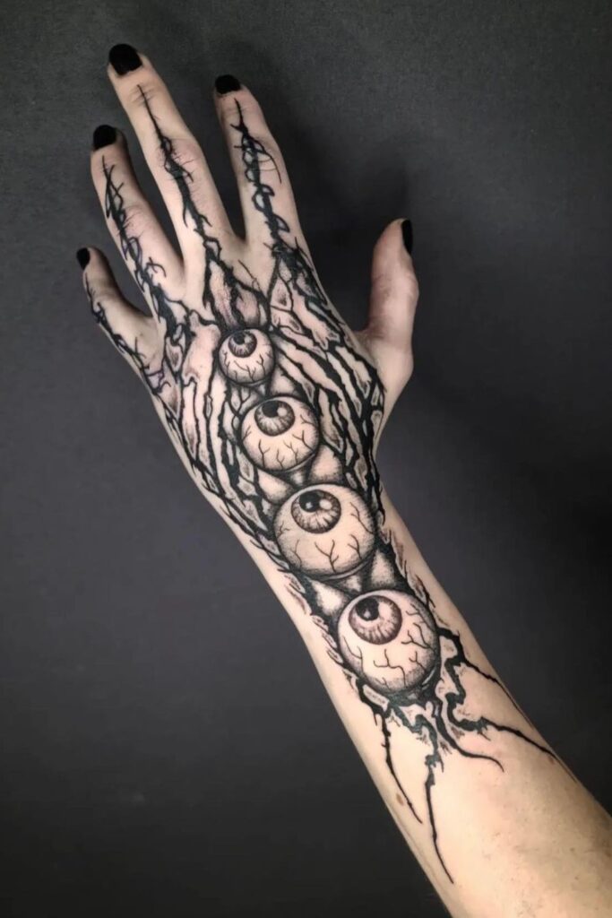 Eyeball Veins Witchy Hand Tattoo