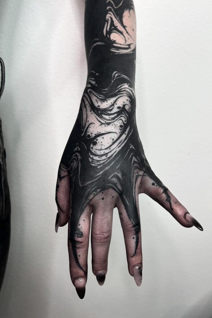 Marbled Magic Dark Hand Tattoo
