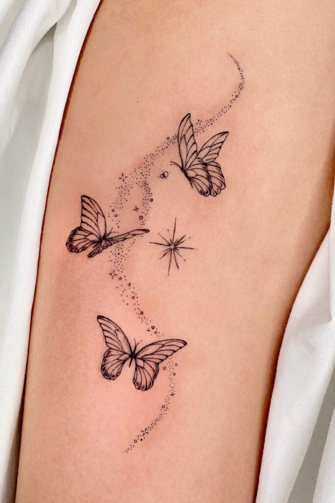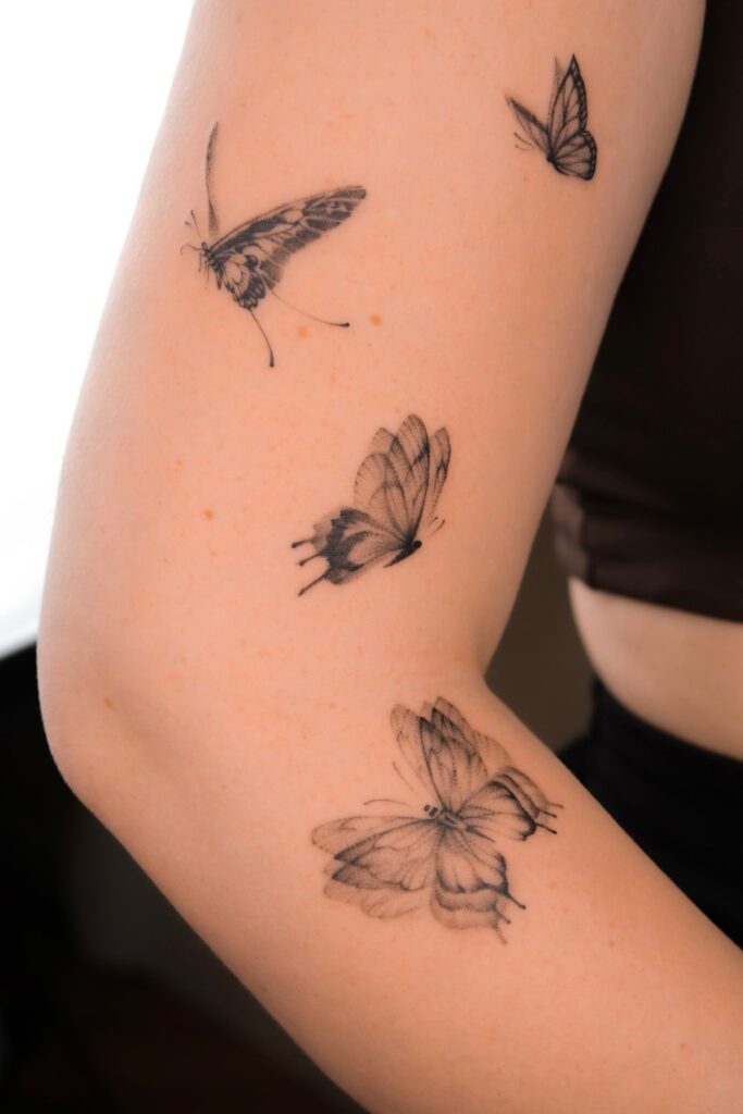 A flying butterflies tattoo often celebrates freedom, a reminder that no matter how heavy life once felt, you can rise above it and soar.