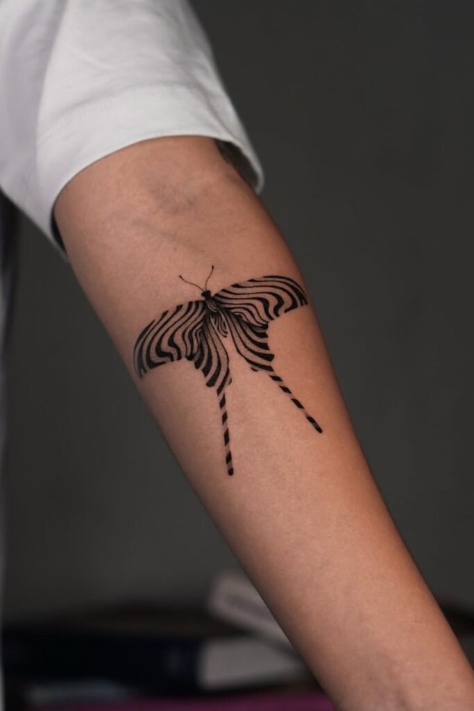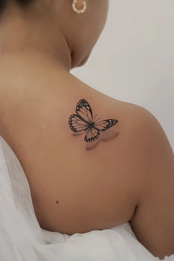 Black butterfly tattoo: Timeless and mysterious, this monochrome style adds depth and contrast while still feeling delicate.
