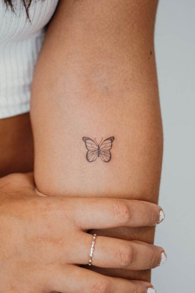 A butterfly tattoo is delicate and visible, making it a lovely everyday reminder of transformation and hope.