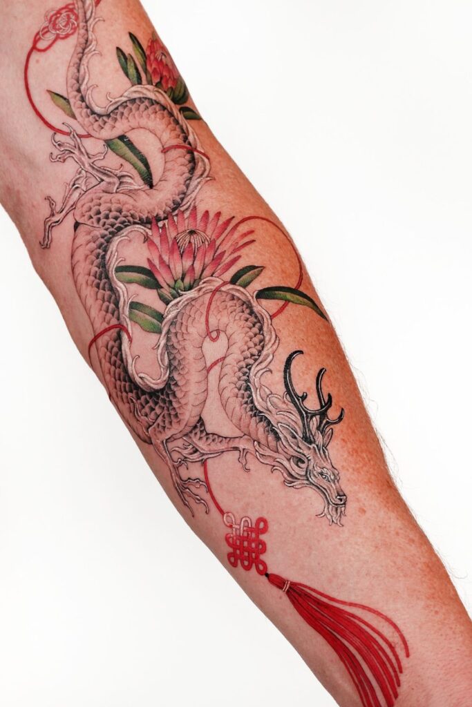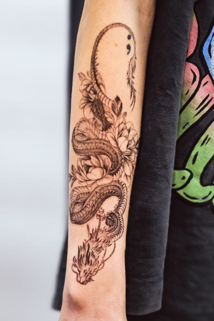 Dragon and Flower Forearm Tattoo – A Unique Blend of Power and Resilience