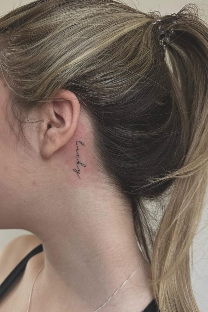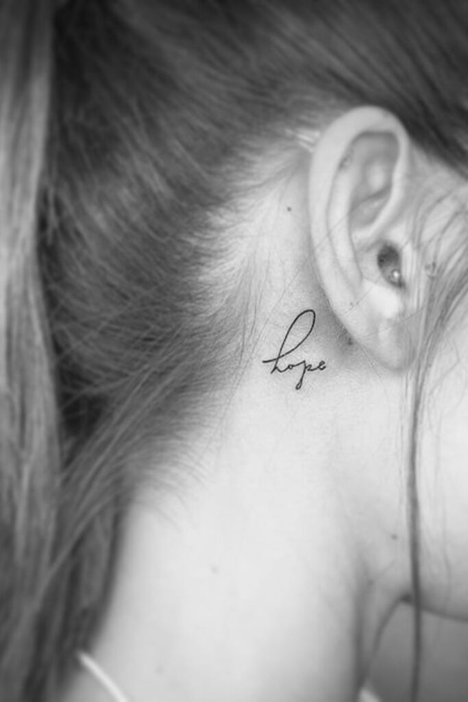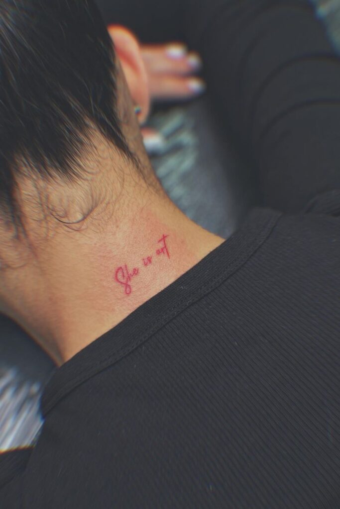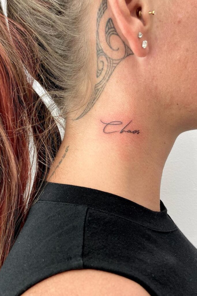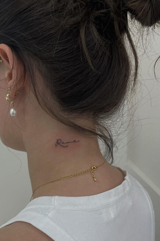 Words and Name Tattoo On Neck For Women