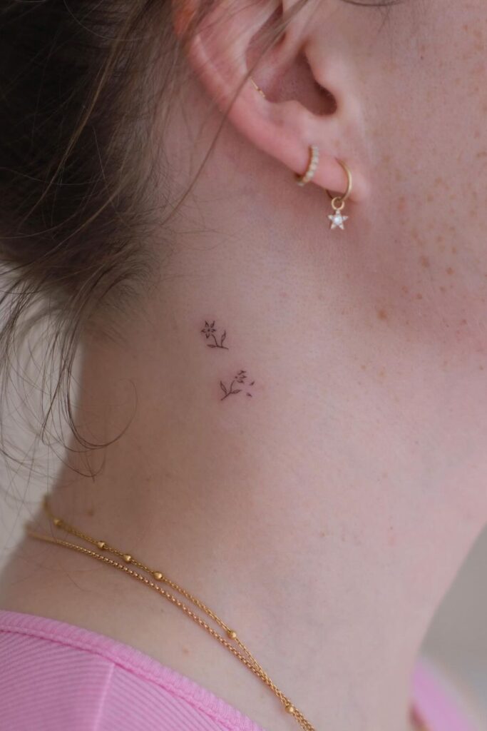 For something more feminine, small girly neck tattoos like stars, flowers, or minimalist butterflies look effortlessly pretty and timeless.