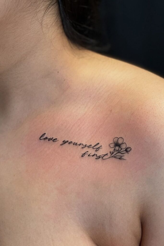 It s an excellent tattoo ideas female on chest option for those who want a personal mantra or meaningful quote inked in an understated yet impactful way.