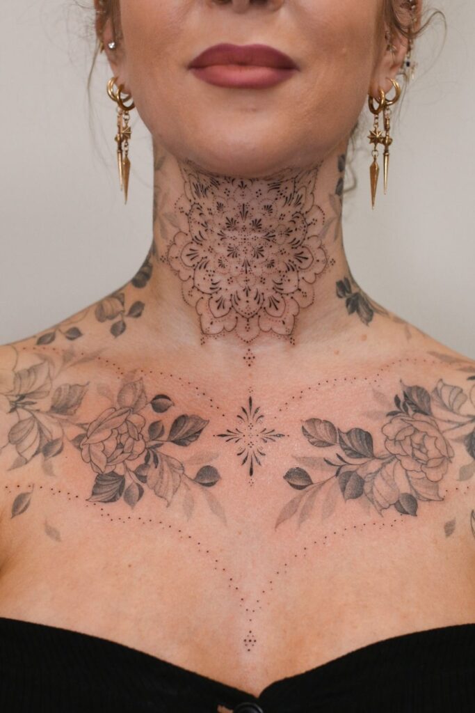 Extending from the chest to the neck, it s an intricate tattoo ideas female on chest choice for those who love detailed and graceful ink.