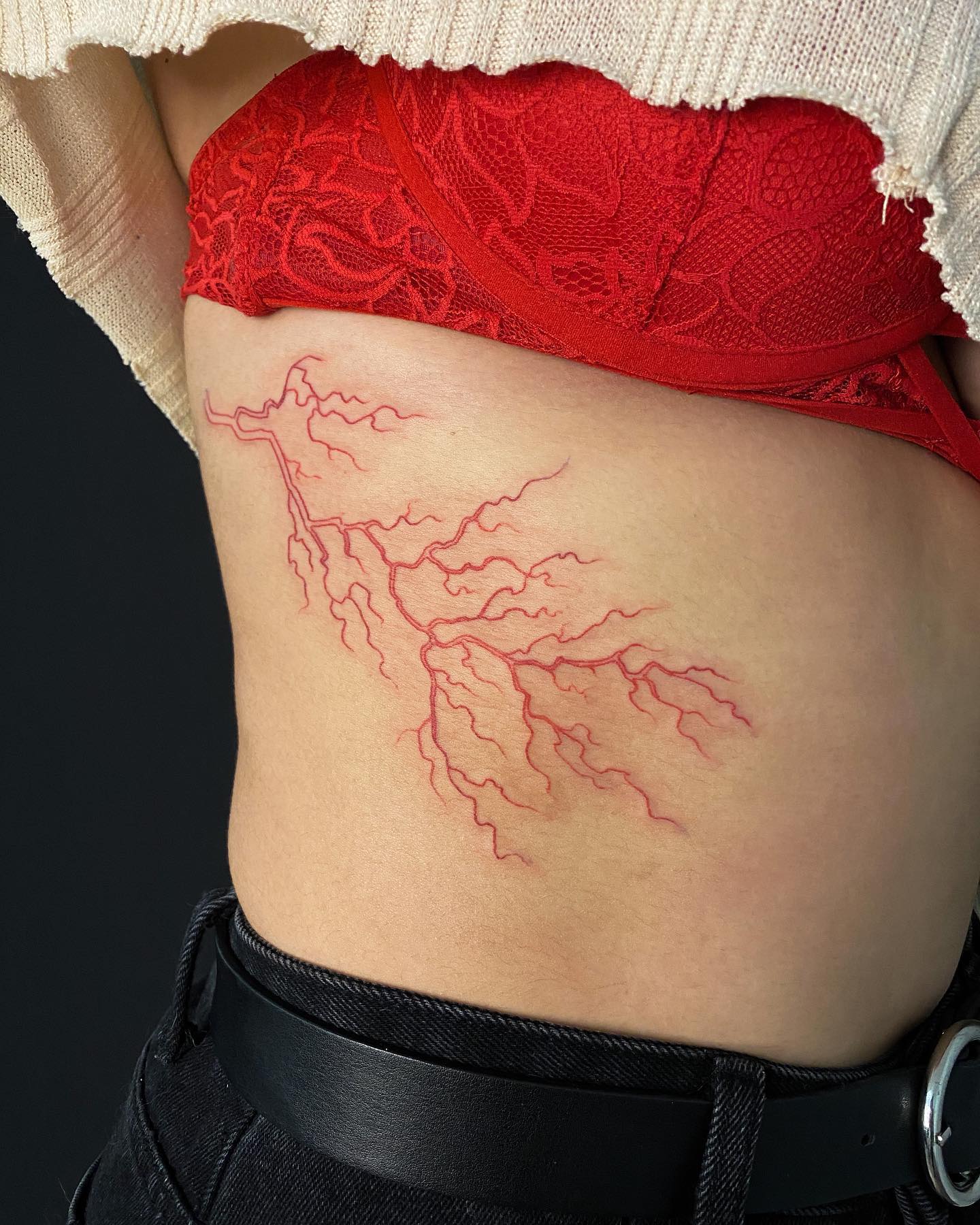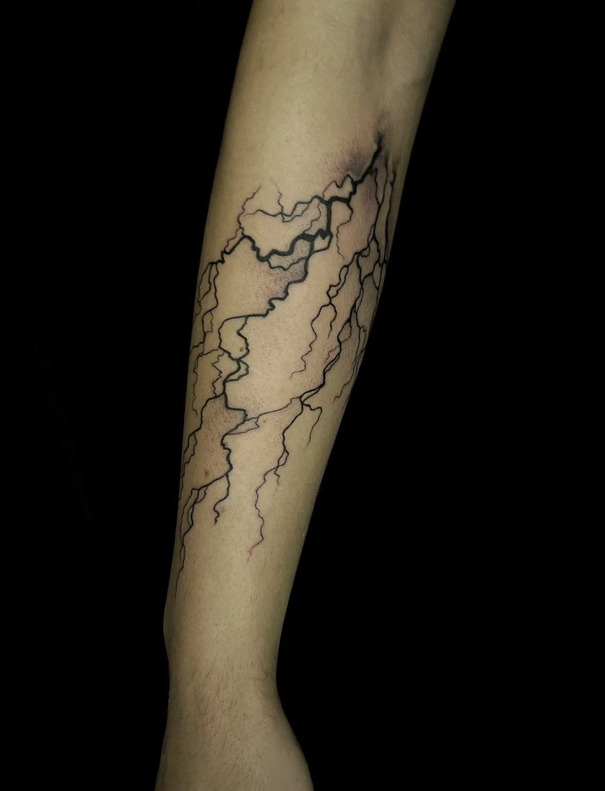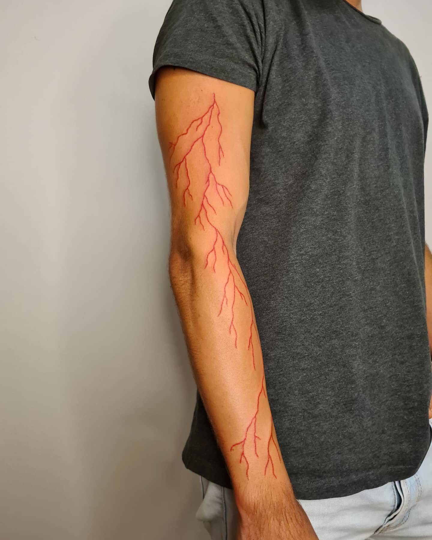 This stunning tattoo showcases a design that resembles lightning bolts, creating a striking visual impact on the arm. The intricate lines mimic the natural patterns of veins, giving it an almost lifelike quality. For those considering similar designs, choosing contrasting colors can enhance the overall effect and make the tattoo truly pop.