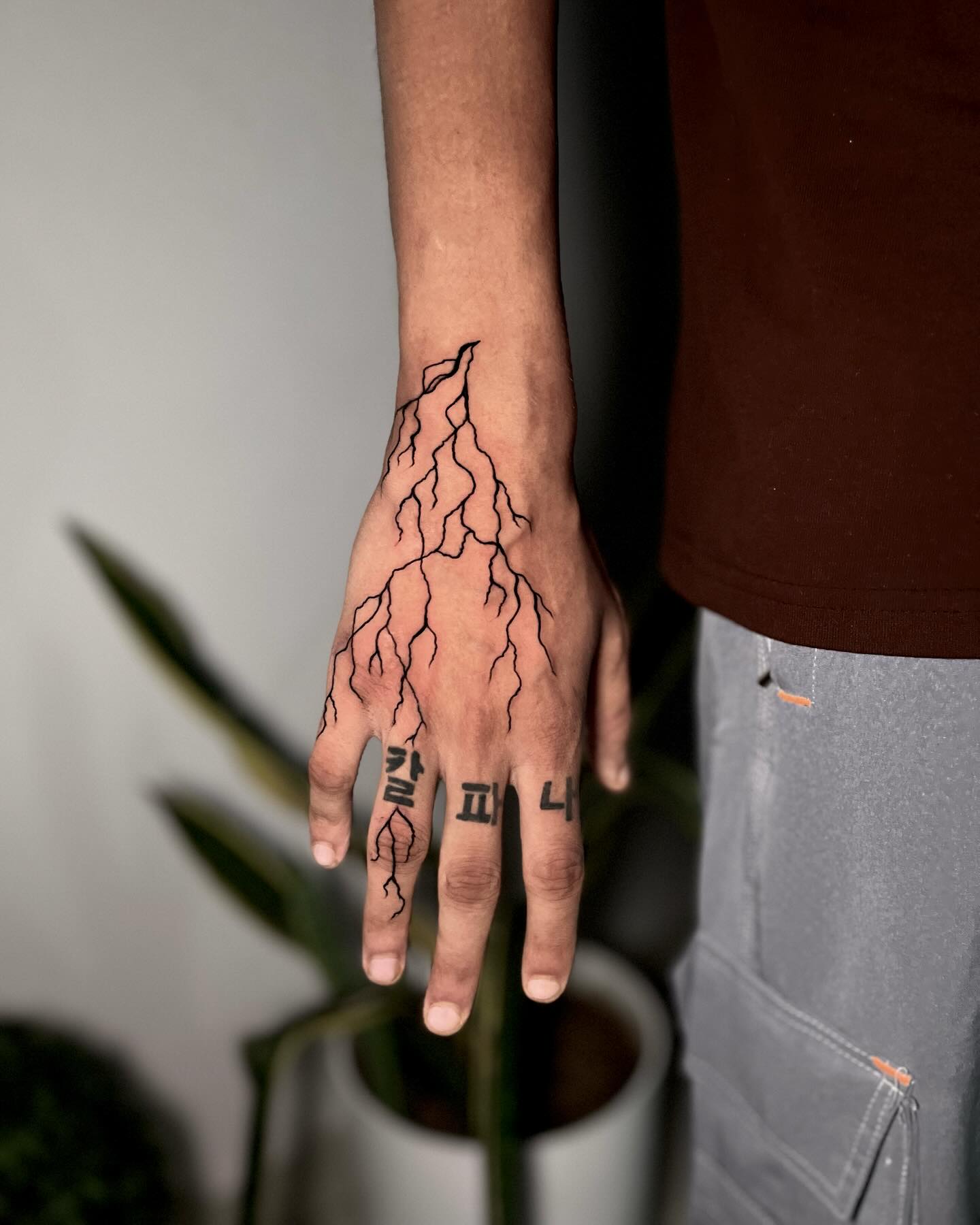 This stunning tattoo design mimics the intricate look of veins, creating a striking visual on the hand. The bold lines and unique placement make it a captivating piece that draws attention and sparks conversation. For those considering a similar design, think about how it reflects personal style and meaning in your life.