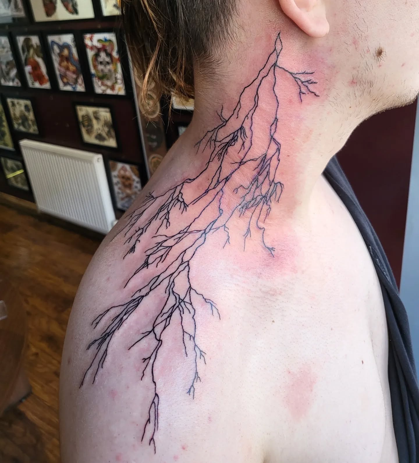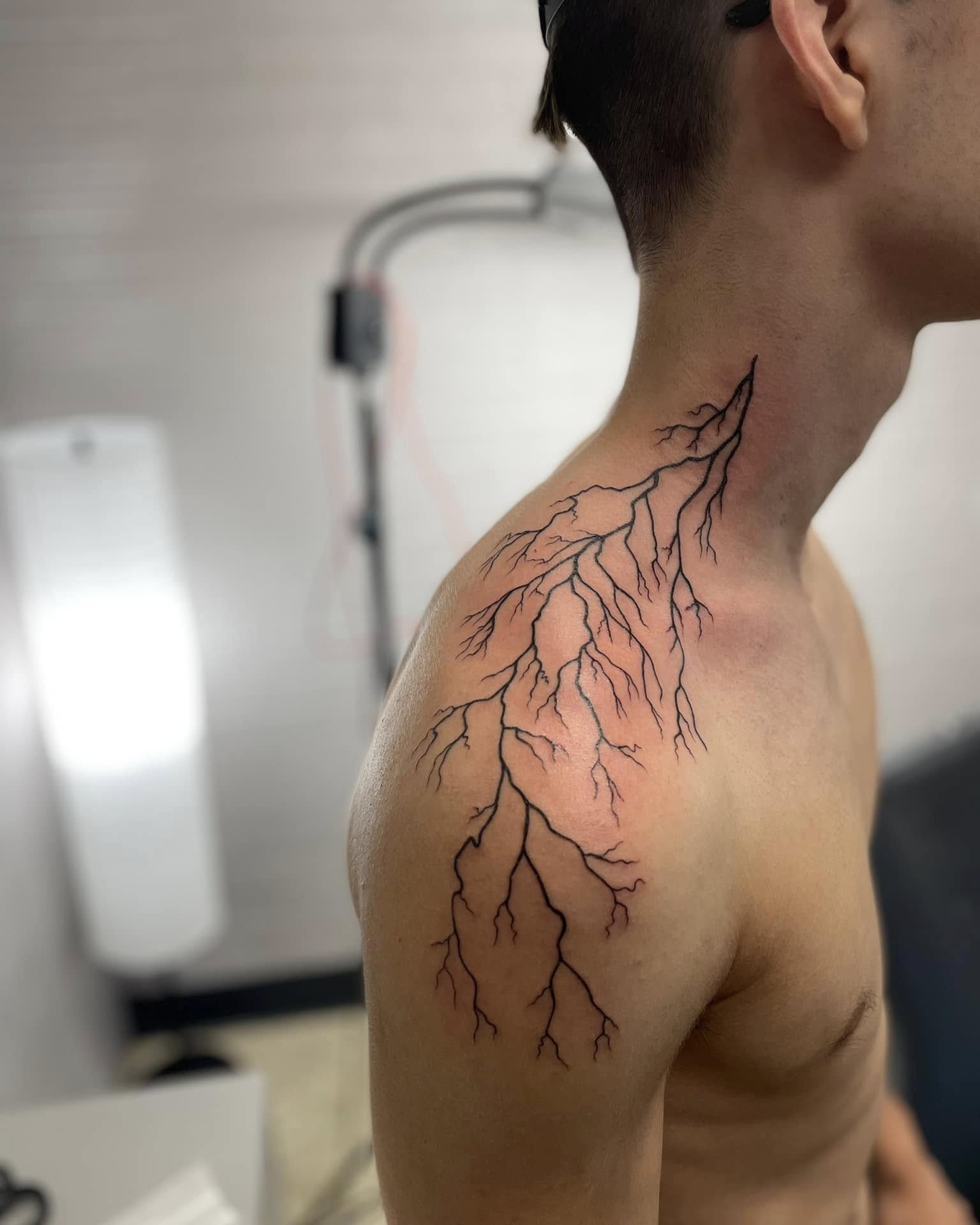 This striking tattoo design resembles the intricate patterns of veins, creating a mesmerizing effect on the skin. The bold lines and soft colors work together to give a sense of movement and life, turning the shoulder into a canvas of art. For those considering a similar design, it’s important to choose an experienced tattoo artist who can bring your vision to life beautifully.
