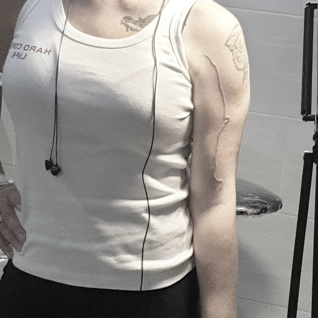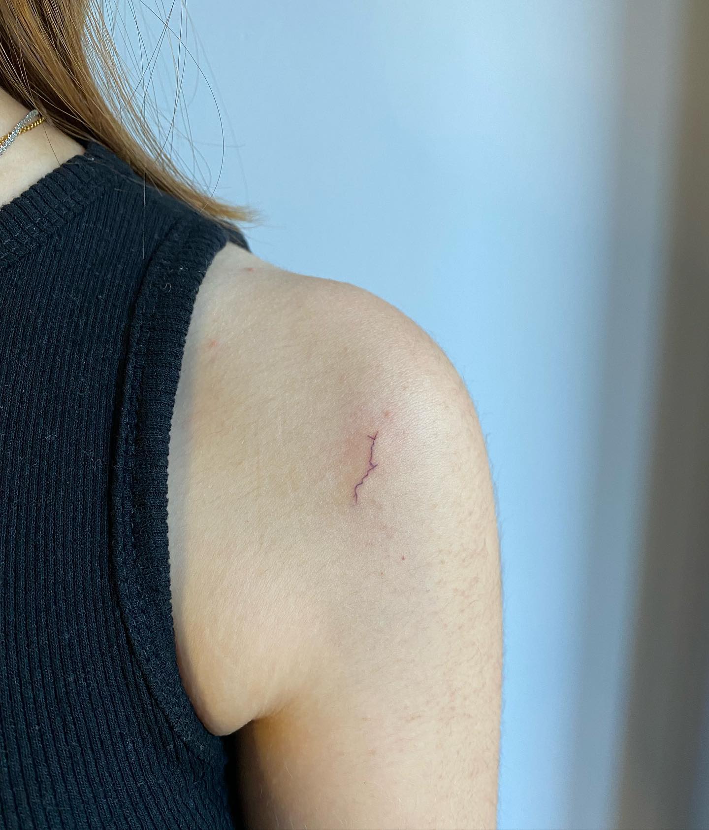 This image showcases a unique vein tattoo on the shoulder, blending artistry and personal expression. The delicate design stands out against the skin, creating a striking contrast that draws the eye. For those considering a similar tattoo, it’s essential to find an artist who understands the subtleties of this style to ensure a beautiful result.