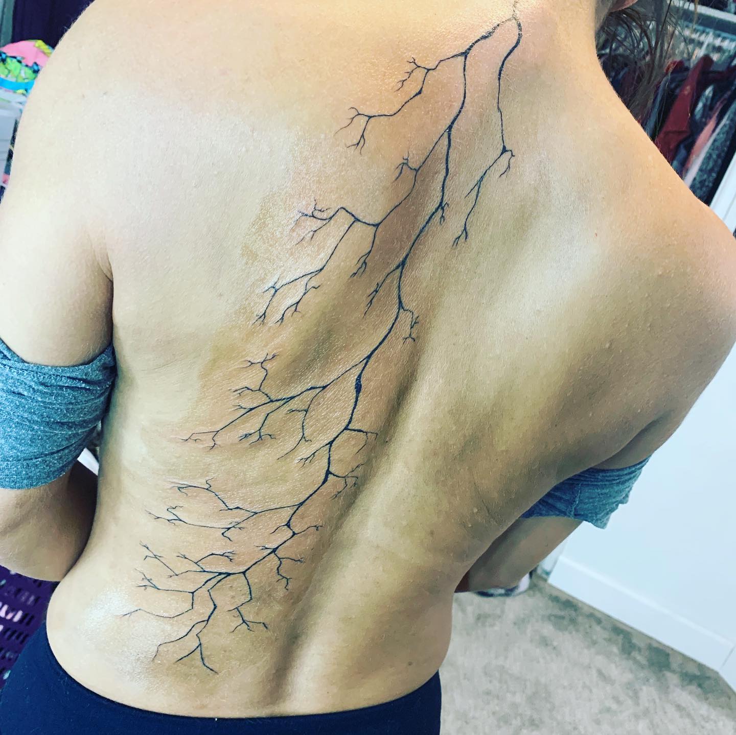 This image showcases a breathtaking tattoo that mimics the intricate patterns of veins along the back. The delicate lines create a unique and artistic look, turning the skin into a canvas for creativity. Choosing a design like this can really make a statement, reflecting both personal style and a love for innovative body art.