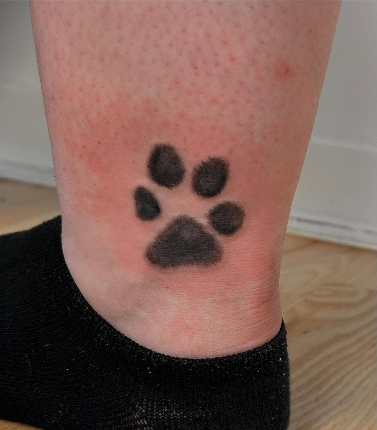 This image features a striking dog paw tattoo on an ankle, showcasing a beautiful blend of artistry and personal connection. The dark ink contrasts beautifully with the skin, making it a memorable tribute to a beloved pet. For those considering a similar design, choosing a spot that feels meaningful can enhance the tattoo’s significance.