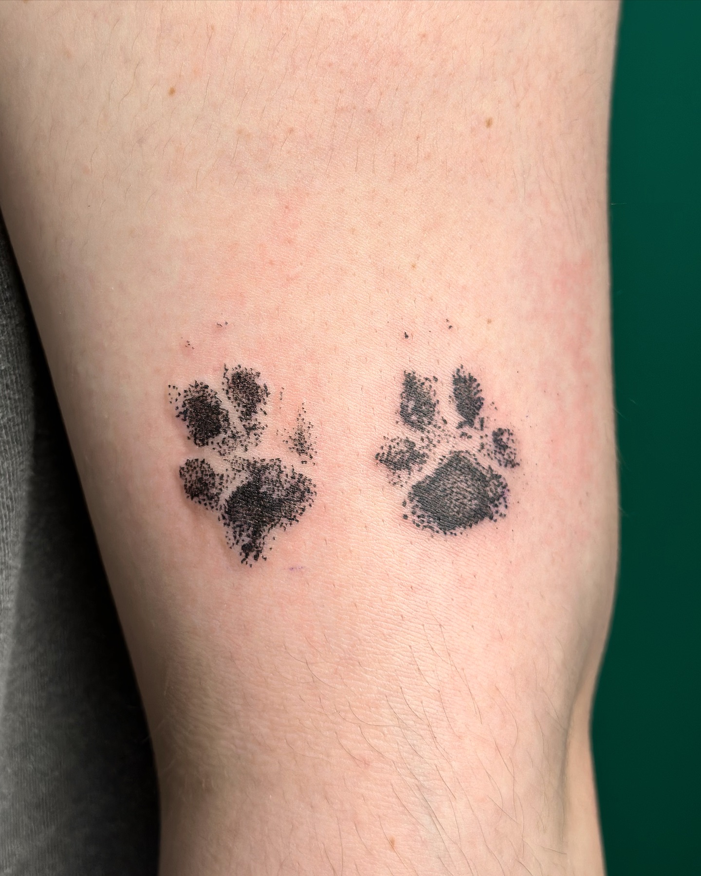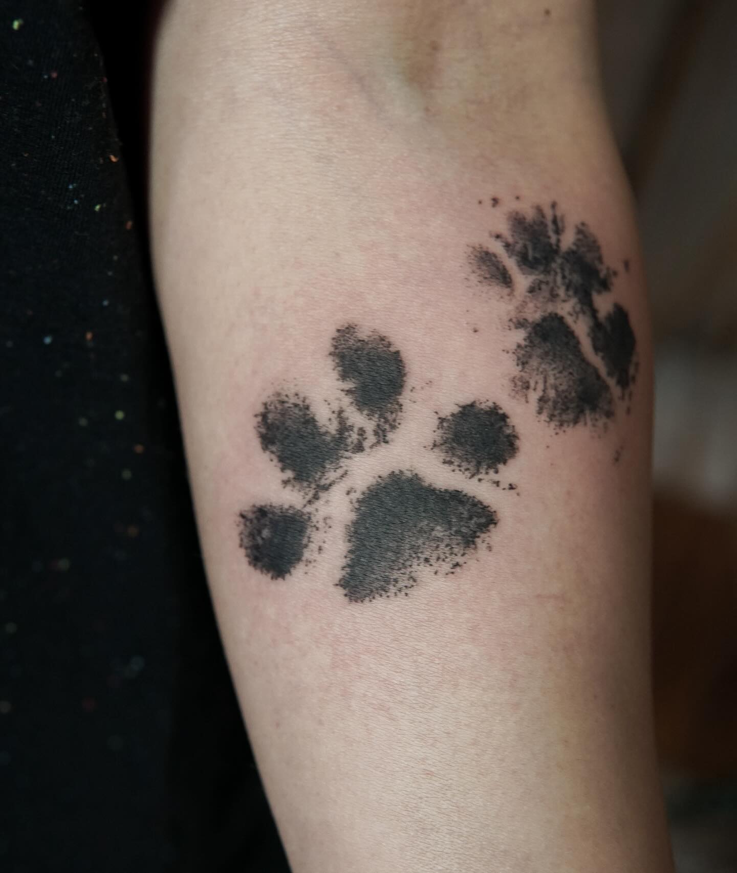 This lovely tattoo features a set of dog paw prints that create a unique and personal touch. The soft, smudgy lines give it a playful charm, making it a perfect tribute to a beloved pet. For those considering a similar design, choosing a spot that feels meaningful can enhance the tattoo s significance even more.