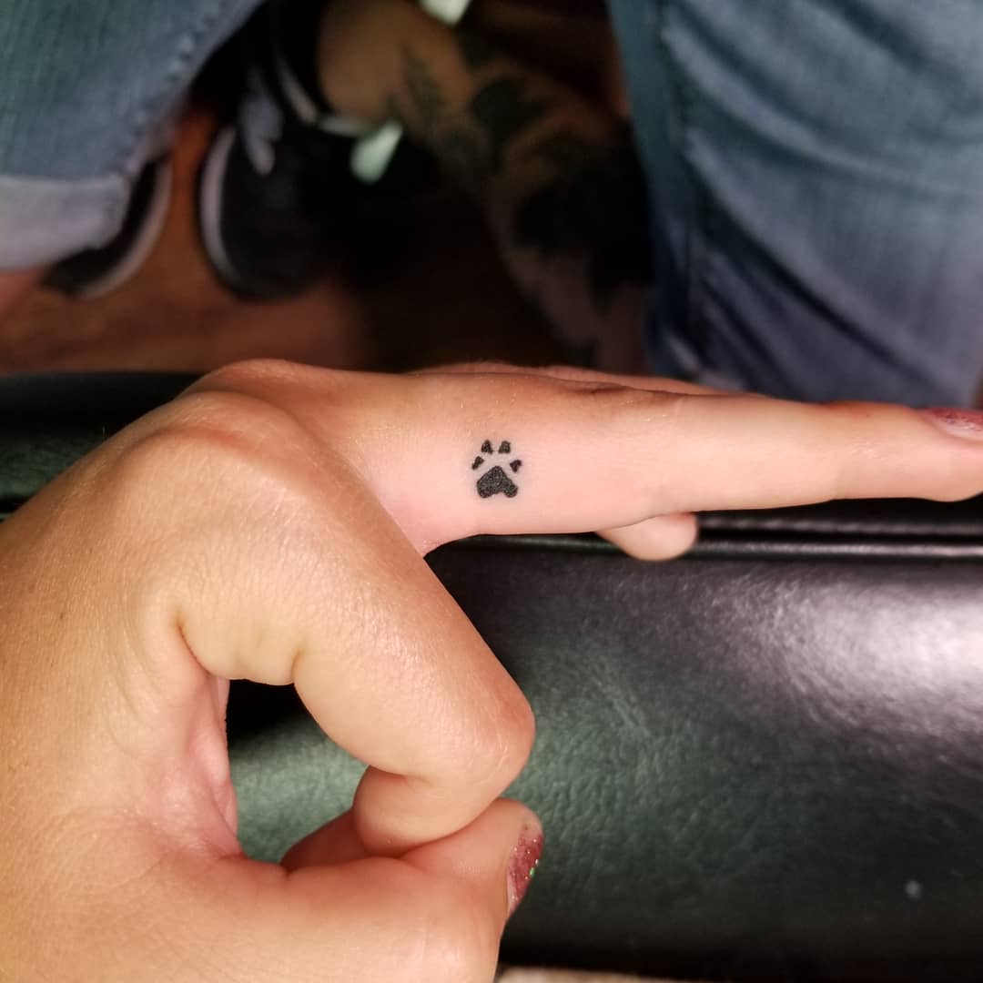 This delightful tattoo of a dog paw print on a finger captures the love many have for their furry friends. Its small size makes it a subtle yet meaningful way to show off a passion for pets. For those considering a similar design, choosing a spot that feels personal can enhance its sentimental value.