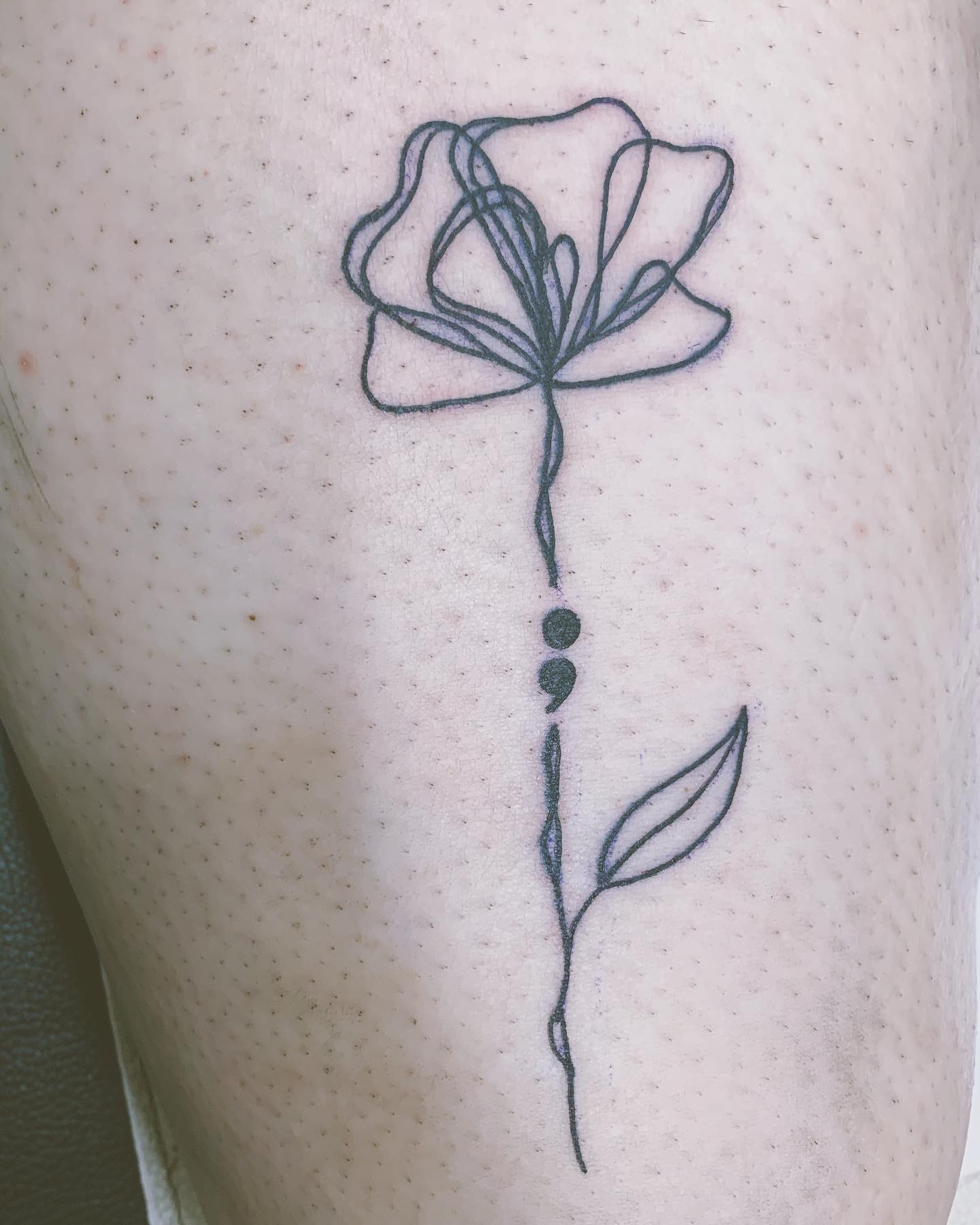 The clean lines and minimalist style highlight the significance of the semicolon as a representation of resilience and continuation.