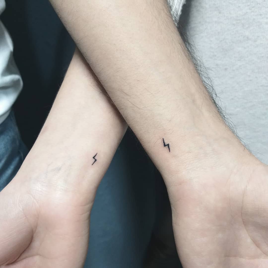 This image showcases two elegant lightning bolt tattoos, perfectly placed on each person’s wrist. They symbolize a strong bond between the wearers, reflecting their shared energy and dynamic relationship. Choosing matching tattoos can be a memorable way to celebrate friendship or love, making them even more special.